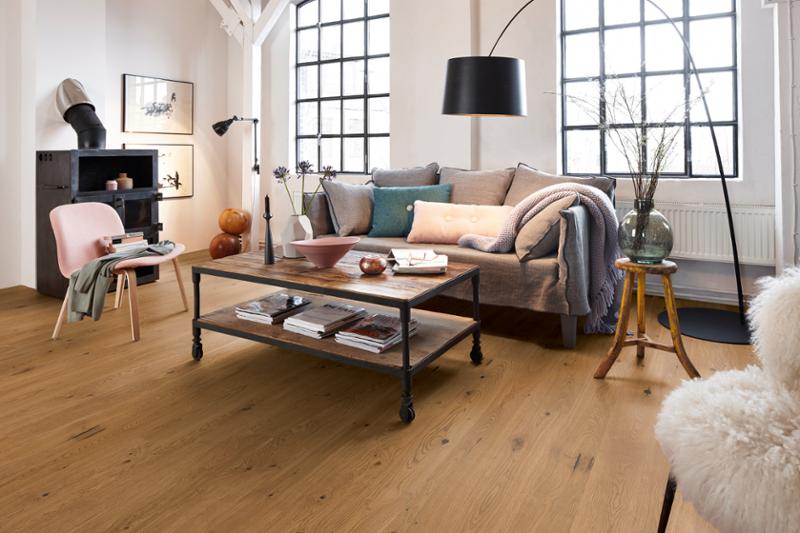 Třívrstvá dubová podlaha v severském stylu, vyznačující se živou kresbou dřeva v hřejivé středně hnědé barvě. Podlaha Vám pomůže vytvořit útulný pocit domova. Povrchová úprava je přírodní olej, který nechá vyniknout přirozené kráse dřeva. Dostupná též v šíři 138 mm, 181 mm, 209 mm a též exkluzivních 300 mm.